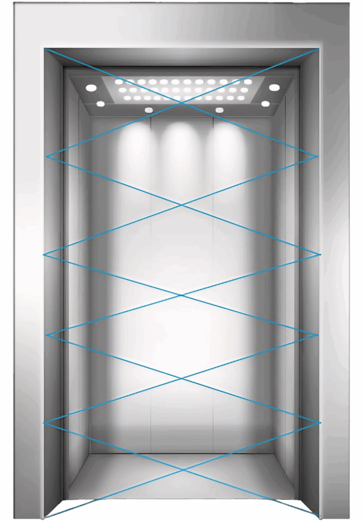 A Multipro elevator has set intensive, sensitive infrared light curtains at the landing door for all-round protection, which can react to people or goods in the detecting area, making the access more safe and free.