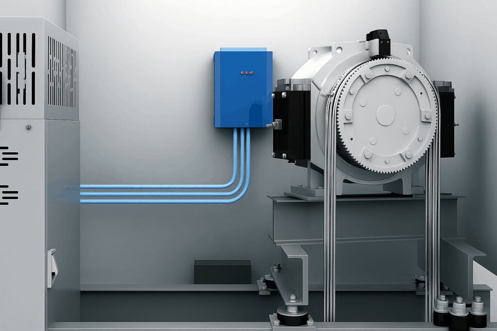 It can collect the energy generated in the no-load going-up or full-load going down to power grid for other equipment. This process can save energy by more than 30%.